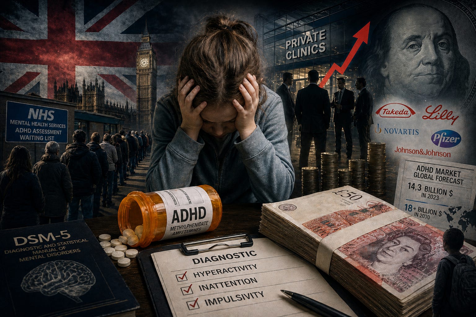 Au Royaume-Uni, le trouble du déficit de l’attention avec hyperactivité est en train de devenir l’un des marchés les plus rentables de la santé privée. Le NHS prévoit 314 millions de livres de dépenses pour la seule prise en charge du TDAH cette année — plus du double du budget initial. Plus de 500 000 Britanniques sont en attente d’évaluation. Et derrière ce tsunami, les fonds d’investissement rachètent les cliniques privées les unes après les autres, avec des marges qui feraient pâlir d’envie n’importe quel industriel classique.